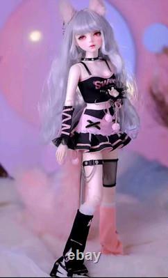 This is a 1/3 scale BJD (ball-jointed doll) full set, featuring a female plastic joint doll with pink hair and pink eyes. The doll comes with a full set of clothes and shoes, suitable for teens, adults, and youth. It is an original BJD brand doll manufactured in the current time period.